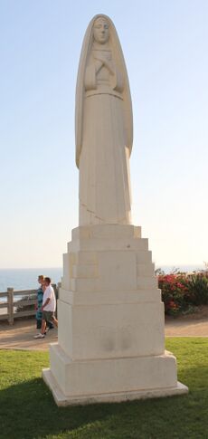 There are two different accounts of how the city's name came to be. One says it was named in honor of the feast day of Saint Monica (mother of Saint Augustine), but her feast day is May 4. Another version says it was named by Juan Crespí on account of a pair of springs, the Kuruvungna Springs, that were reminiscent of the tears Saint Monica shed over her son's early impiety.[6][7]