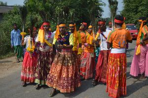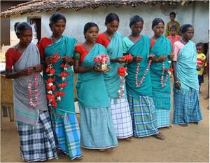 ![]() Santals in traditional dress celebrating Baha parab | |