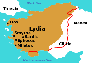 كانت سرديس، عاصمة كروسس القديمة، لا تزال "مدينة عظيمة" غي عهد أسترابون. وقد تأثر شيشرون بعظمة متليني وجمالها ووصفها لونگوس Longus في القرن الثالث وصفاً يذكرنا بجمال مدينة البندقية(63).