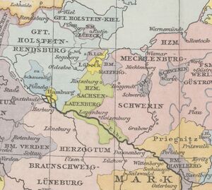 ![]() The Duchy of Saxe-Lauenburg in 1848 (map in Dutch) | |||||||||