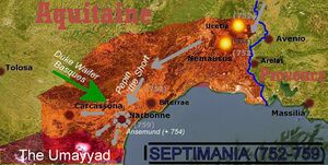 Narbonne capitulated to the Christian Franks in 759 only after Pepin promised the defenders of the city to uphold the Visigothic law, and the county was granted to Miló, Gothic count of Narbonne, thus earning the loyalty of Septimanian Goths against Duke Waifer, the independent ruler (princeps) of Aquitaine.[49] After the Frankish conquest of Narbonne in 759, the Muslim Arabs and Berbers were defeated by the Christian Franks that proceeded to chase them away from Septimania, and the Carolingian king Pepin the Short came up reinforced.[50] The siege remained as a key battlefield in the context of the Carolingian expedition south to Provence and Septimania starting in 752.[51] The Iberian Christian counter-offensive known as the Reconquista began in the early 8th century, when Andalusian Muslim forces managed to temporarily push into Aquitaine.[52] In the wake of Narbonne's submission, Pepin took Roussillon, and then directed his effort against Toulouse, Rouergue, and Albigeois in Aquitaine, leading to the battle for Aquitaine.[5]