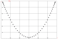 Kendall (1971) applied multidimensional scaling to the cemetery data of Münsingen. The resulting scatterplot showed the form of a horse-shoe where the graves were arranged on the curve according to their chronological order. Similarly, a mapping of the component scores for the first two axes of the correspondence analysis result will display a parabola if the design styles considered are controlled by one factor only (like chronology). This is called the arch effect by Hill and Gauch (1980).[8] Both Kendall and Jensen & Høilund Nielsen (1997) created artificial data sets to show that the parabola results in ideal circumstances. Therefore, it is recommended inspecting the scatterplot of the first two axes of correspondence analysis to find out if other factors play a role as well (see Examples 2 and 3).