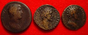 Sestertius of Hadrian, dupondius of Antoninus Pius, and as of Marcus Aurelius