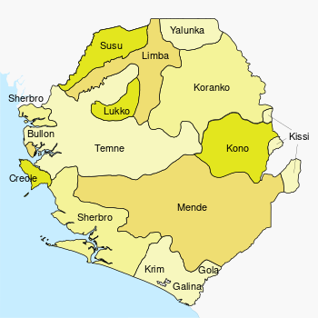 خريطة الجماعات العرقية في سيراليون. الشربرو ملوّنون باللون البني.