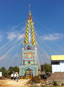 An example of assimilation took place in Maharashtra, where a regional deity named Khandoba is a patron deity of farming and herding castes.[57] The foremost center of worship of Khandoba in Maharashtra is in Jejuri.[58] Khandoba has been assimilated as a form of Shiva himself,[59] in which case he is worshipped in the form of a lingam.[57][60] Khandoba's varied associations also include an identification with Surya[57] and Karttikeya.[61]