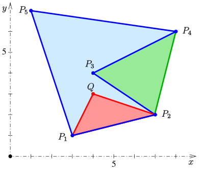 Given: A planar simple polygon with a positively oriented (counter clock wise) sequence of points in a Cartesian coordinate system.