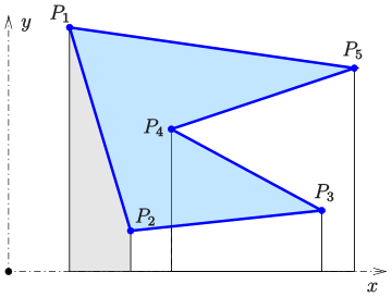 Basic idea: Any polygon edge determines the signed area of a trapezoid. All these areas sum up to the polygon area.