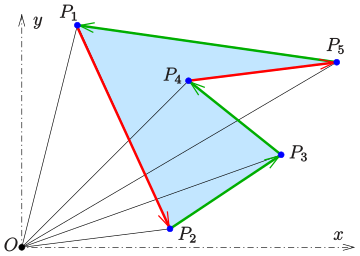 The trapezoid formula sums up a sequence of oriented areas of trapezoids with as one of its four edges (see below):