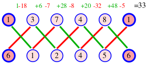 Shoelace scheme, vertical form: With all the slashes drawn, the matrix loosely resembles a shoe with the laces done up, giving rise to the algorithm's name.