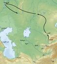 The Golden Horde was a fragment of the Mongol Empire mainly located in Eastern Europe.[33][34] After the death of Jochi, the eldest son of Genghis Khan and khan of the Golden Horde, the Golden Horde itself divided into many wings with mainly White and Blue wings among Jochi's descendants.[35][36] In the late 1370s and early 1380s, Timur firstly helped Tokhtamysh against his uncle Urus Khan to assume supreme power in the White wing and then in the unification of the Golden Horde.[29] Timur also supported him in the siege of Moscow in 1382 and received tribute from Muscovy.[29]