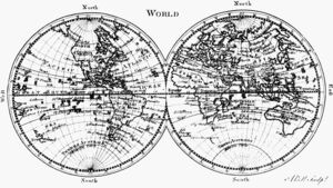 تُظهر خريطة العالم العامة أو الكرة الأرضية المائية التي رسمها صمويل دون عام 1794 المحيط الجنوبي (لكن هذا يعني ما يسمى اليوم بالمحيط الأطلسي الجنوبي) والمحيط الجليدي الجنوبي.