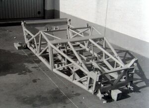 A post WW2 attempt to build a racing car space frame was the Cisitalia D46 of 1946.[13] This used two small diameter tubes along each side, but they were spaced apart by vertical smaller tubes, and so were not diagonalised in any plane. A year later, Porsche designed their Type 360 for Cisitalia. As this included diagonal tubes, it can be considered a true space frame and arguable the first mid-rear engined design.[13]