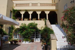 He saw the need for a comfortable hotel and built the Poseidonion in the style of its French Mediterranean models, the Carlton in Cannes (1911) and the Negresco in Nice (1912). The hunters could bring along their wives and children to enjoy the comfort of the hotel, the spa, donkey rides, dancing to the orchestra in the evening, and mixed bathing on the beaches across the channel. The Poseidonion rapidly became the favorite vacation spot for high society, royalty, and the rich Athenians who came to enjoy a small slice of the grand life.[7]
