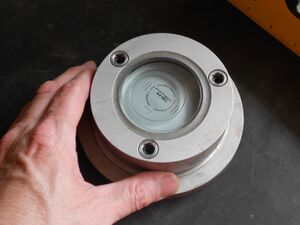 A variant of the linear spirit level is the bull's eye level: a circular, flat-bottomed device with the liquid under a slightly convex glass face with a circle at the center. It serves to level a surface across a plane, while the tubular level only does so in the direction of the tube.
