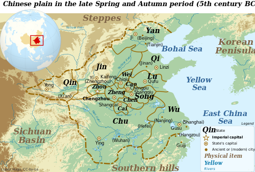 أواخر فترة الربيع والخريف، القرن الخامس ق.م، قل تفكك دولتي جين وتشين وانتقالهما إلى سيتشوان. دولة ويي على الخريطة، هي دولة واي، وليست دولة ويي الأخرى التي تأسست من تقسيم دولة جين.