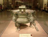 A large bronze tripod vessel from the Spring and Autumn period, now located at the Henan Museum
