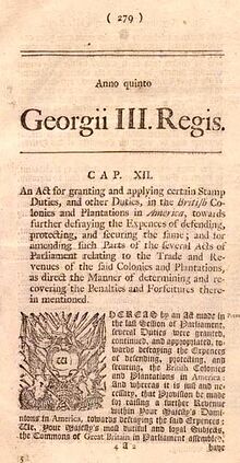 2. ^ "The Stamp Act of 1765 – A Serendipitous Find" by Hermann Ivester in The Revenue Journal, The Revenue Society, Vol.XX, No.3, December 2009, pp. 87–89.