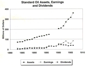 أعادت هذه العائلات استثمار معظم أرباحها في صناعات أخرى، وخاصة خطوط السكك الحديدية. كما استثمروا بشكلٍ كبير في أعمال الغاز والإضاءة الكهربائية (بما في ذلك شركة اديسون الموحدة في نيويورك). لقد أجروا عمليات شراء كبيرة من المخزون في يو اس ستيل، شركة النحاس المدمج، وحتى شركة تكرير منتجات الذرة[23] بدأ ويتمان پيرسون، رجل أعمال بريطاني في مجال البترول في المكسيك، التفاوض مع ستاندارد أويل في 1912-13 لبيع شركة النفط "El Aguila"، نظراً لأن پيرسون لم يعد ملزماً بالوعود لنظام پورفيريو دياز (1876-1911) لعدم البيع لمصالح الولايات المتحدة. ومع ذلك، فشلت الصفقة وبيعت الشركة إلى شيل رويال دوتش .[24]