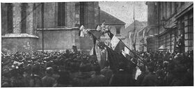 On 28 October, Gyula Andrássy the Younger sent a peace note to the American government while the Ban of Croatia, Antun Mihalović, reported to the Emperor and was dismissed with the instruction "Do as you please".[13] The Ministry of War had also decided to allow the local military commands to approach the people's councils in order to help maintain law and order. All this was taken as a sign that the Austro-Hungarian monarchy was disintegrating and that the State of Slovenes, Croats and Serbs was an attainable goal.[14]