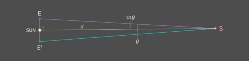 so that d = E-Sun / tan(½θ), where E-Sun is 1 AU.