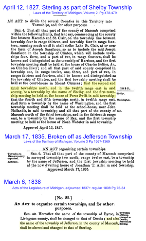 - ^ "An Act organizing certain townships" - Laws of the Territory of Michigan, Volume 3, pgs. 1367-1369