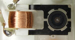 The principal components of a synchronous motor are the stator and the rotor.[24] The stator of synchronous motor and stator of induction motor are similar in construction.[25] With the wound-rotor synchronous doubly fed electric machine as the exception, the stator frame contains wrapper plate.[26] Circumferential ribs and keybars are attached to the wrapper plate.[26] To carry the weight of the machine, frame mounts and footings are required.[26] When the field winding is excited by DC excitation, brushes and slip rings are required to connect to the excitation supply.[27] The field winding can also be excited by a brushless exciter.[28] Cylindrical, round rotors, (also known as non salient pole rotor) are used for up to six poles. In some machines or when a large number of poles are needed, a salient pole rotor is used.[29][30] The construction of synchronous motor is similar to that of a synchronous alternator.[31] Most of the synchronous motors construction uses the stationary armature and rotating field winding. This type of construction as an advantage than DC motor type where the armature used is of rotating type.