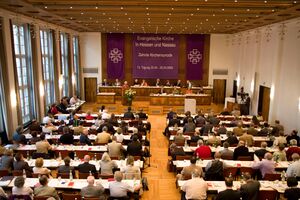• In Europe, a synod can be a legislature comprising deputies elected by all enfranchised members of a church and competent for the entire church. It is similar to a general assembly in Presbyterianism, and found, in regional Protestant church bodies (Landeskirche) in Germany; examples include Landessynode (i.e. regional or land synod) or Generalsynode (general synod). A synod can also be used by an administrative subunit of a church body, such as a city synod (Stadtsynode; comprising synodal deputies of congregations of one denomination within one city) or provincial synod (Provinzialsynode; comprising synodal deputies of congregations within an ecclesiastical province). The use of the term synod to describe a small gathering is now obsolete, the term used instead is Kirchenkreis.