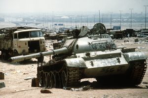 The tank was heavily used during the Iran–Iraq War of 1980-88. T-54/55 participated in the أكبر معركة دبابات في الحرب في مطلع 1981. Iran lost 200 Chieftain and M60A1 tanks in the battle. In return, Iraq lost 50 T-55 and T-62 tanks.[4] Another known tank battle occurred on 15 October 1981, when a large Iranian convoy was ambushed by Iraqi T-55s. During the battle, the Iranians lost 20 Chieftains plus other armoured vehicles and withdrew.[5]