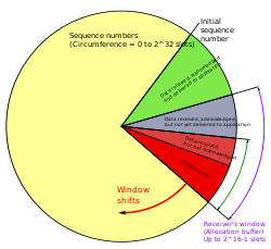 5- حجم النافذة: وهو رقم يخبر به مرسل هذا الطرد الطرف الآخر بعدد الثمانيات التي يمكن لمرسل هذا الطرد أن يستقبلها ابتداءً من رقم التأكيد الذي يوجد في هذا الطرد (هذه تحدد حجم النافذة المتزحلقة عند مرسل هذا الطرد).