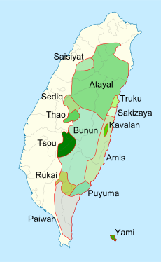 - Recognized: Amis, Atayal, Bunun, Hla'alua, Kanakanavu, Kavalan, Paiwan, Puyuma, Rukai, Saisiyat, Tao, Thao, Tsou, Truku, Sakizaya and Sediq.
