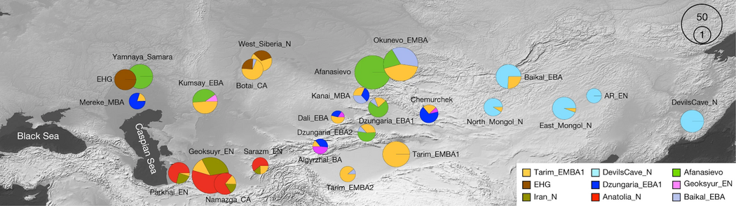 Combining genomic and proteomic evidence, researchers revealed that these earliest residents in the Tarim Basin carried genetic ancestry inherited from local Upper Palaeolithic hunter-gatherers, carried no steppe-related ancestry, but consumed milk products, indicating communications of persistence practices independent from genetic exchange.