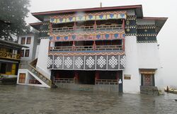 The monastery currently has control over 17 gompas in West Kameng district.[8] The monastery has administrative control over two dzongs, each headed by a monk; the Darana Dzong built in 1831 and the Sanglem Dzong, also known as Talung Gompa, in the south-west part of Kameng district. These dzongs not only collect taxes but also preach Buddhism to the Monpas and Sherdukpens of Kameng.[23] The monastery owns cultivable lands in the villages of Soma and Nerguit and a few patches in some other villages which are tilled and cultivated by farmers, who share the produce with the monastery.[24] The present resident head of the monastery is the incarnate Gyalsy Rinpochey.[15]