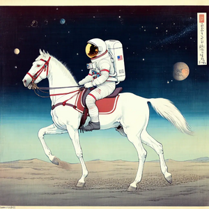 An image conditioned on the prompt an astronaut riding a horse, by Hiroshige, generated by Stable Diffusion 3.5, a large-scale text-to-image model first released in 2022