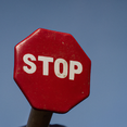 DALL·E 2's (top, April 2022) and DALL·E 3's (bottom, September 2023) generated images for the prompt A stop sign is flying in blue skies