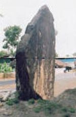 [14] The Ramavarmapuram monument is in granite and is of the menhir type. The monument in Ramavarmapuram is 15 أقدام (4.6 m) in height and 12 أقدام 4 بوصات (3.76 m) wide. Since 1944, it has been protected by the Department of Archaeology. The monument is locally known as Padakkallu or Pulachikkallu. These menhirs are memorials put up at burial sites for the departed souls. They belong to the Megalithic Age of Kerala, which is roughly estimated between 1000 BCE and 500 CE.[15] All such monuments have not been dated exactly. Some experts are of the view that these are the remnants of the Neolithic Age in the development of human technology. The Ramavarmapuram menhir is also believed to be a monument belonging to the Sangam period in the South Indian history.[16]
