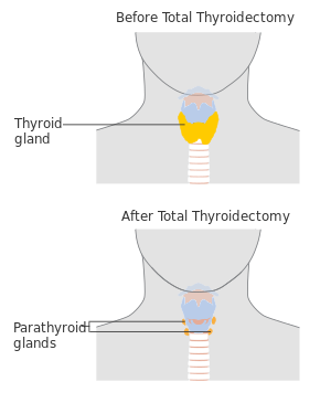 بعد إزالة الغدة الدرقية، المرضى عادة ما يأخذون هرمون الغدة الدرقية الاصطناعية المحدد عن طريق الفم - يفوثيروكسين (مارسيل) - لمنع القصور الدرقي.