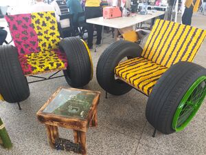 Car tires as seats in Thailand