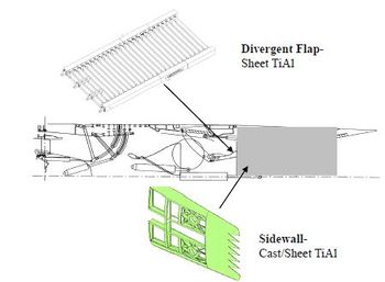 HSCT exhasut nozzle illustrating the use to TIAL for the major nozzle cpmponents.