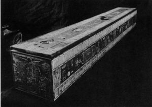 On April 18, 1927, the 2.2-ton sarcophagus was recovered, and on May 21, the walled niche containing the intact canopic chest was opened.[6] It was only after 25 years of painstaking reconstruction work that the entire tomb was published.[7]