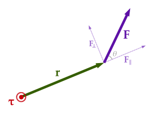 • denotes the cross product, which produces a vector that is perpendicular both to r and to F following the right-hand rule;