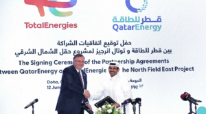 في 12 يونيو 2022، أعلنت قطر عن اتفاقية شراكة بين شركة توتال إنرجي الفرنسية لتكون أول شريك أجنبي لها يساهم في تطوير أكبر حقل للغاز في العالم ويساعد بالتالي في تخفيف وطأة مخاوف أوروپا المرتبطة بالطاقة. وستحظى توتال إنرجي بحصة نسبتها 6.25% في مشروع حقل الشمال الشرقي الذي سيساعد قطر في زيادة إنتاجها من الغاز الطبيعي المسال بأكثر من 60% بحلول عام 2027، وفق ما أعلن وزير الطاقة القطري سعد بن شريده الكعبي خلال مؤتمر صحافي في الدوحة. وقال الكعبي "يسعدني أن أعلن أنه تم اختيار توتال إنرجي أول شريك في مشروع حقل الشمال الشرقي"، معتبرا أن اتفاق الشراكة أشبه بـ"زواج" لأنه سيبقى قائماً حتى عام 2054.[12]