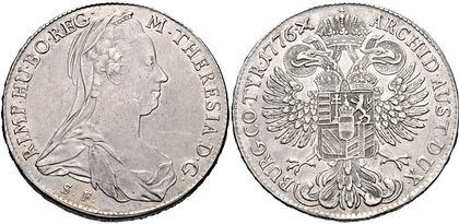 One of the most famous trade coins of the 18th century is the Austrian Maria Theresa thaler. Although dated 1780, it has been minted continuously in Austria well into the 21st century for sale to collectors. The Maria Theresa thaler was previously exported in large quantities to East Africa and the Middle East. It was so highly regarded in Africa that its purchasing power for goods and raw materials was higher there than in Austria.