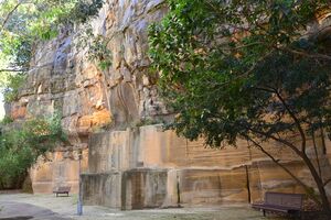 ( … colored sandstone, shell limestone, and mudstone are the result of a period; their fossils are, to avail myself of the words of E. de Beaumont, the thermometer of a geologic epoch; … thus the separation of these structures into 3 formations, which has been maintained until now, isn't appropriate, and it is more consistent with the concept of "formation" to join them into one formation, which for now I will name "trias".) - ^ Herbert, Chris; Helby, Robin (1980). A Guide to the Sydney basin. Maitland, NSW: Geological Survey of NSW. p. 582. ISBN 978-0-7240-1250-3.