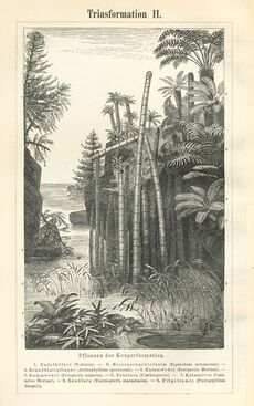 - ^ Friedrich von Alberti, Beitrag zu einer Monographie des bunten Sandsteins, Muschelkalks und Keupers, und die Verbindung dieser Gebilde zu einer Formation [Contribution to a monograph on the colored sandstone, shell limestone and mudstone, and the joining of these structures into one formation] (Stuttgart and Tübingen, (Germany): J. G. Cotta, 1834). Alberti coined the term "Trias" on page 324 :