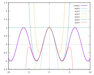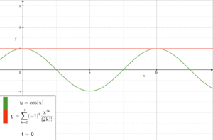 Applying the differential equations to power series with indeterminate coefficients, one may deduce recurrence relations for the coefficients of the Taylor series of the sine and cosine functions. These recurrence relations are easy to solve, and give the series expansions[3]