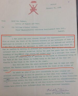 وقد رسم هذه الخرائط الحدود بدقة وجعلهتا رسمية بحسب الامتيازات النفطية؛ وشركات النفط تحتاج إلى معرفة الحدود بدقة لضبط حدود مسوحاتها الجيوفيزيائية والزلزالية كما تنص هذه الرسالة بين سعيد بن تيمور إلى شركة النفط المحدودة.