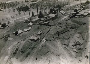Tsumeb, since its founding, has been primarily a mining town. The mine was originally owned by the OMEG (Otavi Minen- und Eisenbahn-Gesellschaft) and later by TCL (Tsumeb Corporation Limited) before its closure a few years ago, when the ore at depth ran out. The main shafts became flooded by ground water over a kilometre deep and the water was collected and pumped as far as the capital, Windhoek. The mine has since been opened up again by a group of local entrepreneurs trading as Ongopolo Mining. A fair amount of oxidized ore remains to be recovered in the old upper levels of the mine. It is highly unlikely, though, that the deepest levels will ever be reopened.[23]