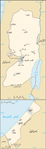 - دولة فلسطين: هي الدولة التي تطالب بإنشائها الجهة الفلسطينية الرسمية على جزء من أرض فلسطين التاريخية وهو الضفة الغربية وقطاع غزة وعاصمتها القدس الشرقية، بجانب الدولة الإسرائيلية الحالية. على الرغم من إعلان قيام الدولة الفلسطينية في عام 1988 في الجزائر، إلا أن الإعلان قد تم من طرف واحد دون أن يكون لذلك تداعيات عملية على أرض الواقع.