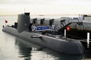 In 2005 Portugal awarded a contract to Howaldtswerke-Deutsche Werft for two Type 214 submarines, which were delivered in 2010. These two submarines, the قالب:NRP and the قالب:NRP, are the only submarines currently in active service with the Portuguese Navy replacing the Albacora-class submarines in 2010.[14][15] In 2014, the two submarines received new UGM-84G Sub-Harpoon Block II missiles.[16] From 2016 to 2018 the Tridente submarine carried out a major mid-term overhaul at Thyssenkrupp Marine Systems shipyards,[17] and the Arpão submarine, from 2018 to 2021 carried out a major mid-term overhaul at the Portuguese Arsenal do Alfeite shipyards[18][19] The Portuguese Military Programming Law signed in May 2019 aims for the modernization of the two submarines by 2030.[20][21]