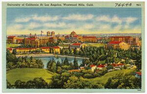 جامعة كاليفورنيا, لوس أنجلس (تعرف بصفة عامة UCLA) ، هي جامعة بحثية عامة تقع في وستوود، كاليفورنيا، الولايات المتحدة. تأسست كفرع من جامعة كاليفورنيا عام 1919، وتعتبر ثاني أقدم حرم في تلك الجامعة (الحرم الأول هو جامعة كاليفورنيا، بركلي)، ومن حيث عدد الطلبة المسجلين وسعة الحرم الجامعي فهي أكبر حرم (فرع) بجامعة كاليفورنيا.[12] Its academic roots were established in 1881 as a normal school then known as the southern branch of the California State Normal School which later evolved into San José State University. The branch was transferred to the University of California to become the Southern Branch of the University of California in 1919, making it the second-oldest of the ten-campus University of California system after the University of California, Berkeley.